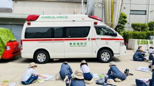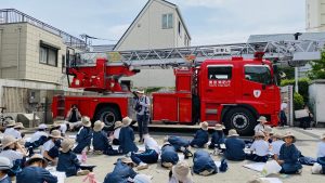 3年生は、中野消防署まで歩いていき、消防車や救急車を描きます。