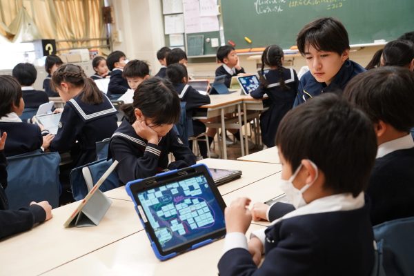 系列の宝仙学園中学校より、中学2年生5名が職業体験として小学校に来てくれました。教室で子どもたちの様子を見学しながら、同じ時間を過ごします。