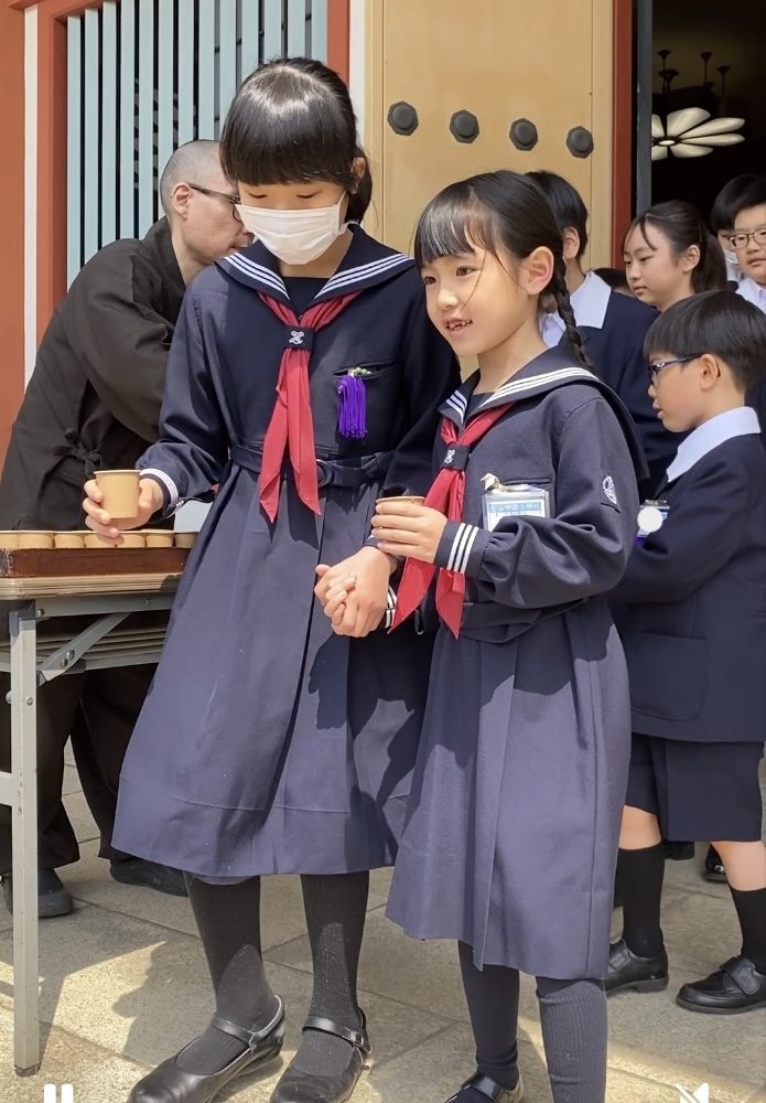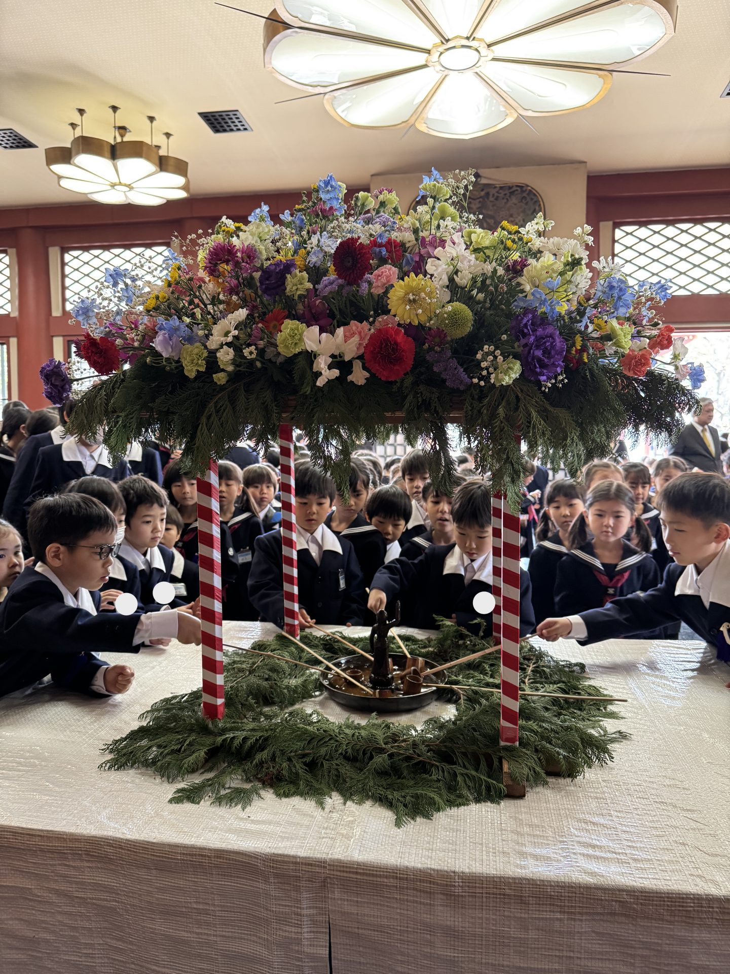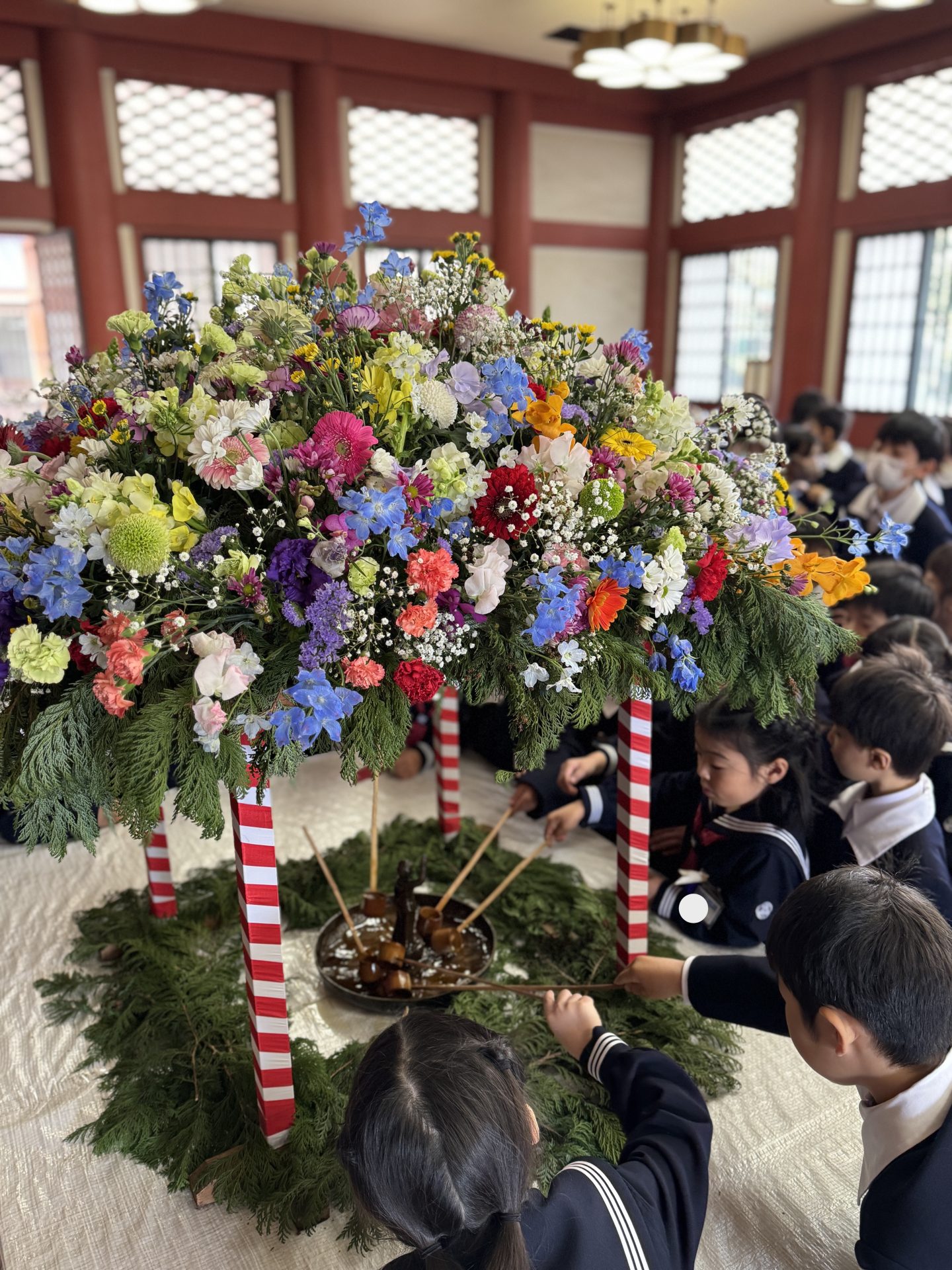 一人一輪のお花をもって登校し、そのお花をお祝いとして釈迦様に捧げます。